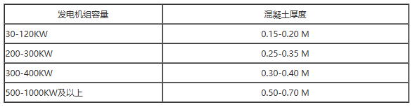組裝基本的好與壞,在發(fā)電機(jī)組的正常使用時(shí)會(huì)獲得顯著反應(yīng)。用戶在選擇組裝康明斯發(fā)電機(jī)基本時(shí),要了解土層狀況,土層至少得可以承受發(fā)電機(jī)隊(duì)的長(zhǎng)久有效凈重及震動(dòng),所以在設(shè)計(jì)時(shí)應(yīng)仔細(xì)斟酌。現(xiàn)階段一般來(lái)說(shuō),混泥土厚度應(yīng)符合下列規(guī)定就可以: