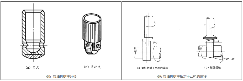 滾軸式挺柱是挺柱的一種,其優(yōu)點(diǎn)是可以減小摩擦導(dǎo)致對(duì)頂住的橫向力。這類(lèi)挺柱構(gòu)造繁瑣,如下圖5(b)所顯示,品質(zhì)比較大,一般多用以大軸徑柴油機(jī)上。挺柱常見(jiàn)鎳鉻生鐵或幽寂合金鑄鐵生產(chǎn)制造,其摩擦面必須經(jīng)熱處理后碾磨。