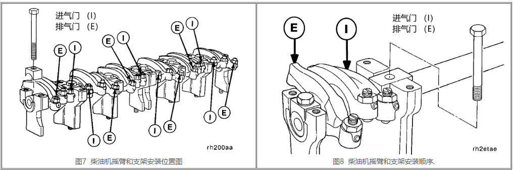 拐臂組的作用主要是更改力的傳遞方位。拐臂相當(dāng)于一個(gè)杠桿結(jié)構(gòu),這將擺桿的作用力轉(zhuǎn)換方向發(fā)送給氣門(mén)桿尾部從而促進(jìn)氣缸開(kāi)啟;運(yùn)用兩側(cè)肱骨長(zhǎng)的比值(稱拐臂比)來(lái)調(diào)節(jié)氣缸的升程,氣門(mén)搖臂一般生產(chǎn)制造成不同長(zhǎng)的方式,靠氣缸一邊比靠擺桿一邊肱骨長(zhǎng)30%~50%,這可以得到比較大的氣門(mén)升程。拐臂組的安裝位置和次序如下圖7、圖8圖示。